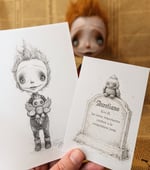 ✨ Illustrated card featuring the sketch of his tombstone
